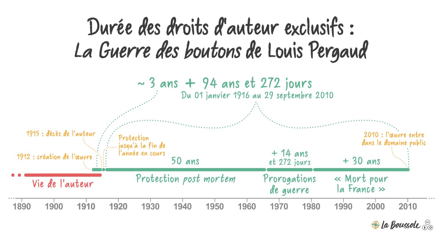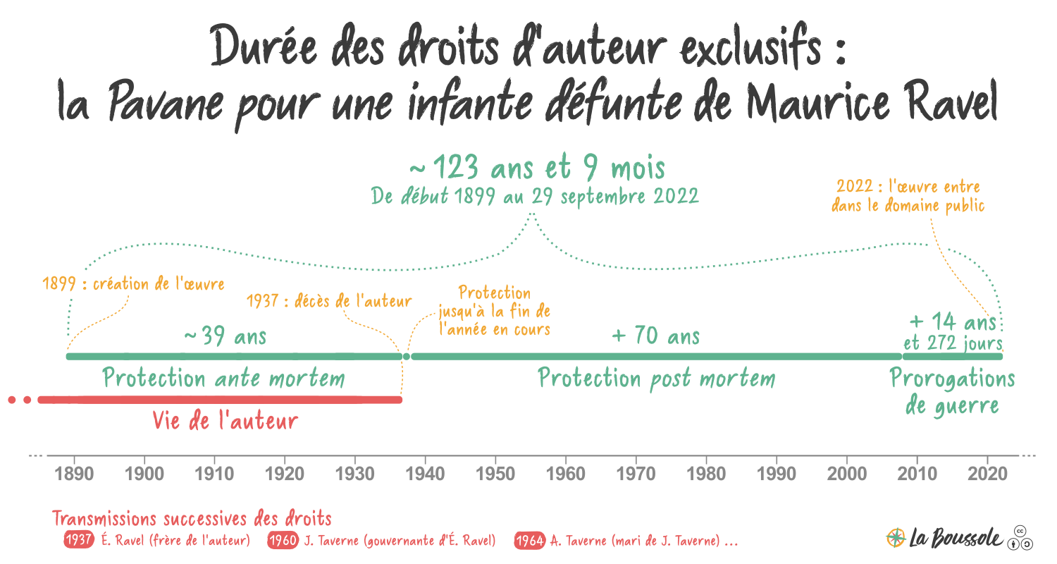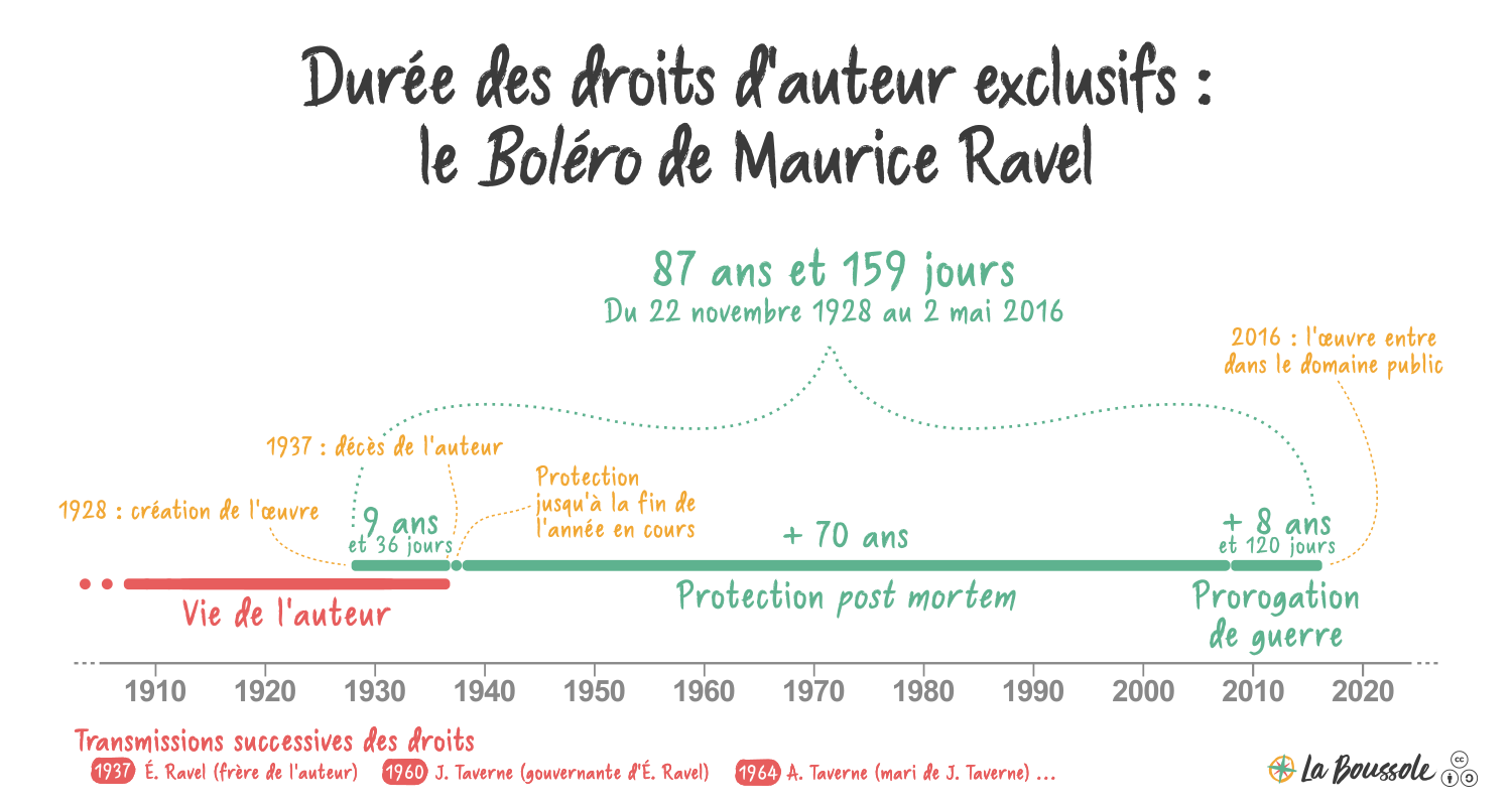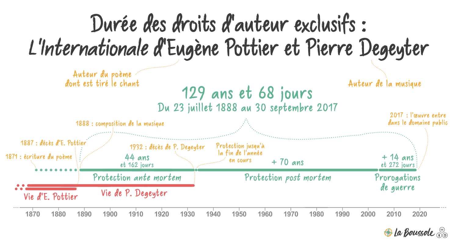 Les bases du droit d'auteur actuel sont posées aux alentours de la Révolution française de 1789. À partir de ce moment, le droit exclusif de l'auteur·e d'interdire ou d'autoriser l'exploitation de ses œuvres dure :